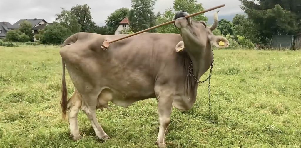 Reč je o trinaestogodišnjoj kravi Veroniki iz Koruške (Gailtal), koja koristi alate kako bi se počešala i rešila svrab na telu. Veronika, krava rase braunfih, živi na planinskoj ispaši kod porodice biološkog farmera Vitgara Vigelea, koji je drži kao kućnog ljubimca, a ne za proizvodnju mleka ili mesa.